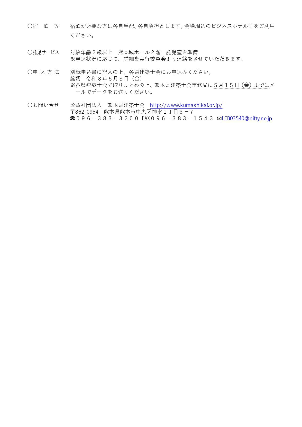 2026年3月19日 / 最終更新日 : 2026年3月19日 佐賀県建築士会 お知らせ 令和8年度建築士の集い熊本大会のご案内 1.令和8年度建築士の集い熊本大会のご案内ダウンロード 2.大会概要ダウンロード 3.参加申込書ダウンロード