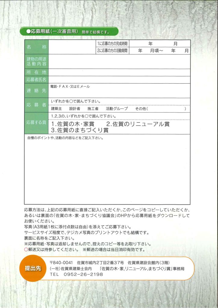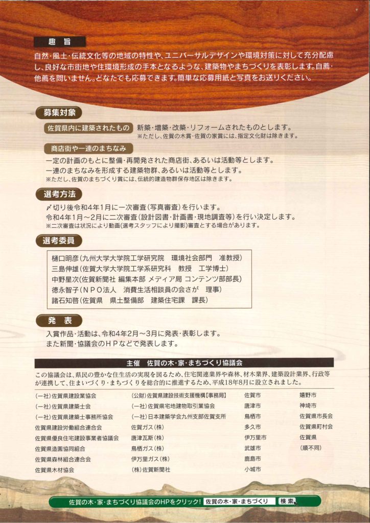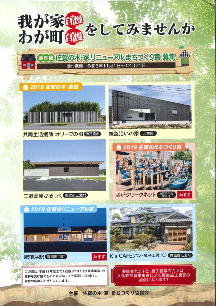 3. 「第8回 佐賀の木・家、リニューアル、まちづくり賞」募集について