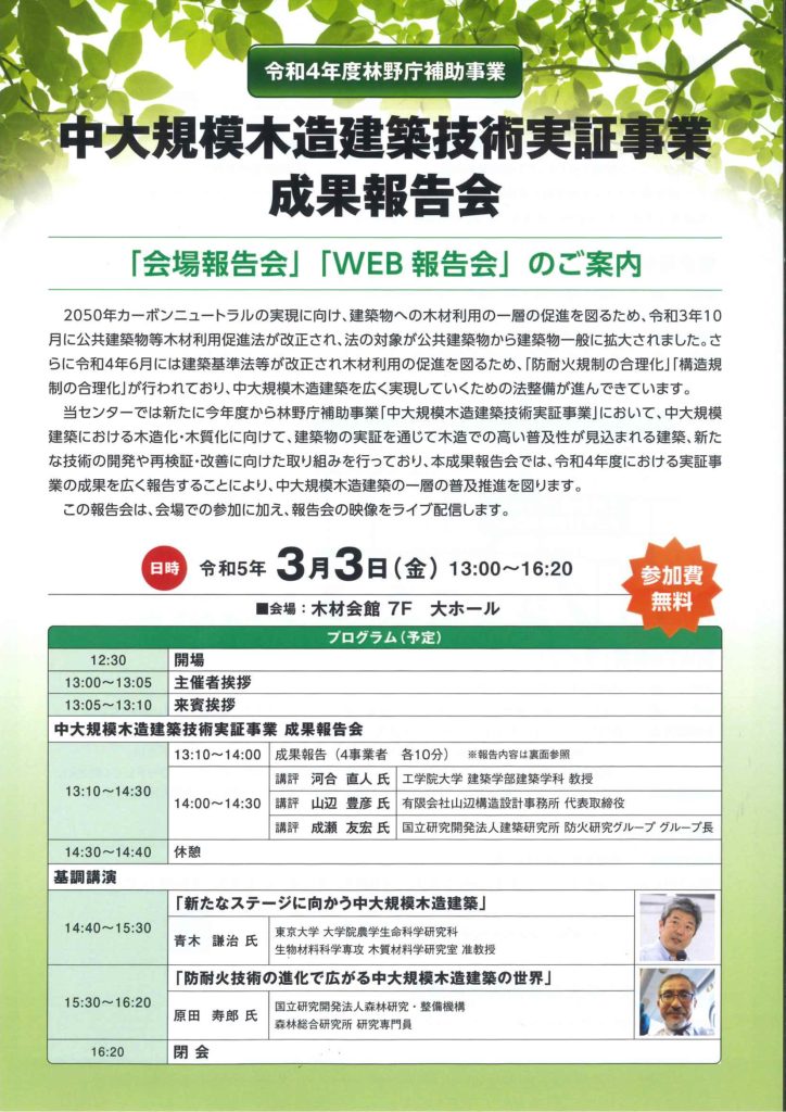 中大規模木造建築技術実証事業成果報告会