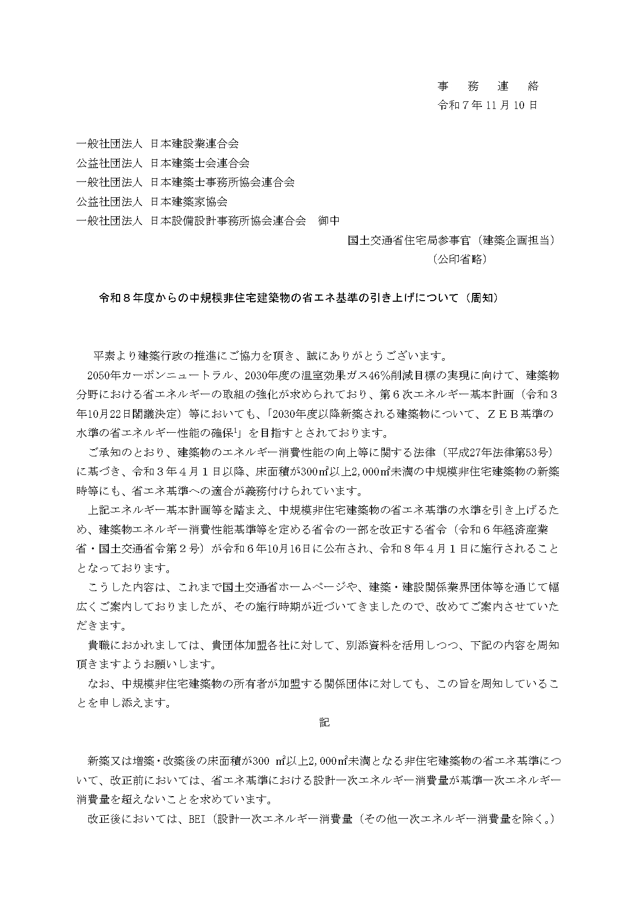 令和8年度からの中規模非住宅建築物の省エネ基準の引き上げについて(周知)