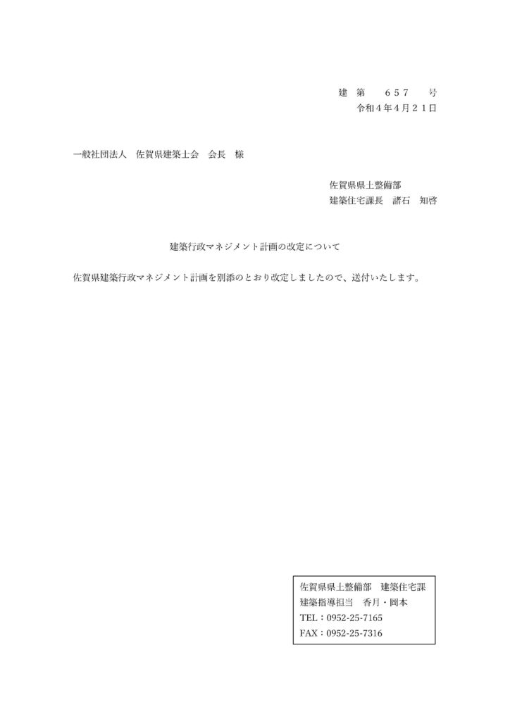 佐賀県建築行政マネジメント計画を改定しましたので、周知いたします。