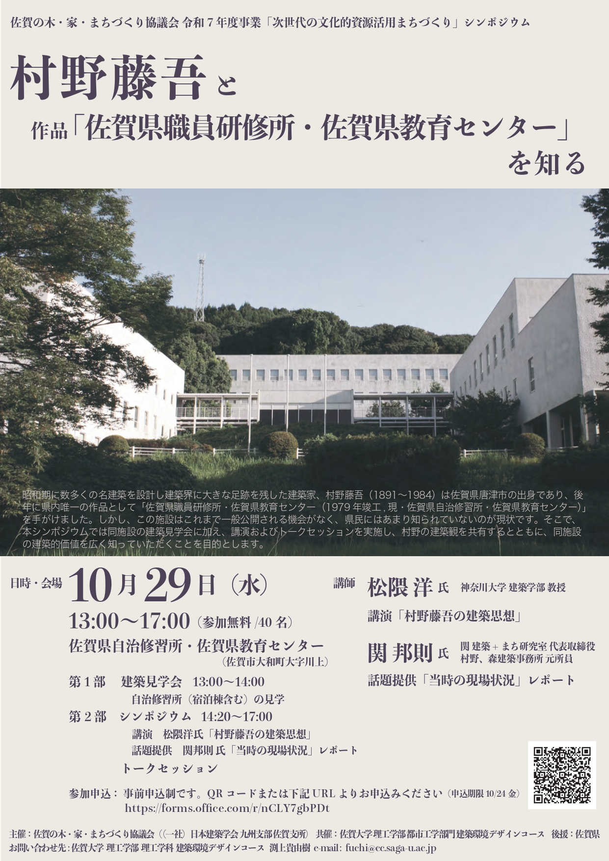3. 唐津出身の建築家・村野藤吾と県内唯一の作品である「佐賀県職員研修所・佐賀県教育センター」 シンポジウムのご案内
