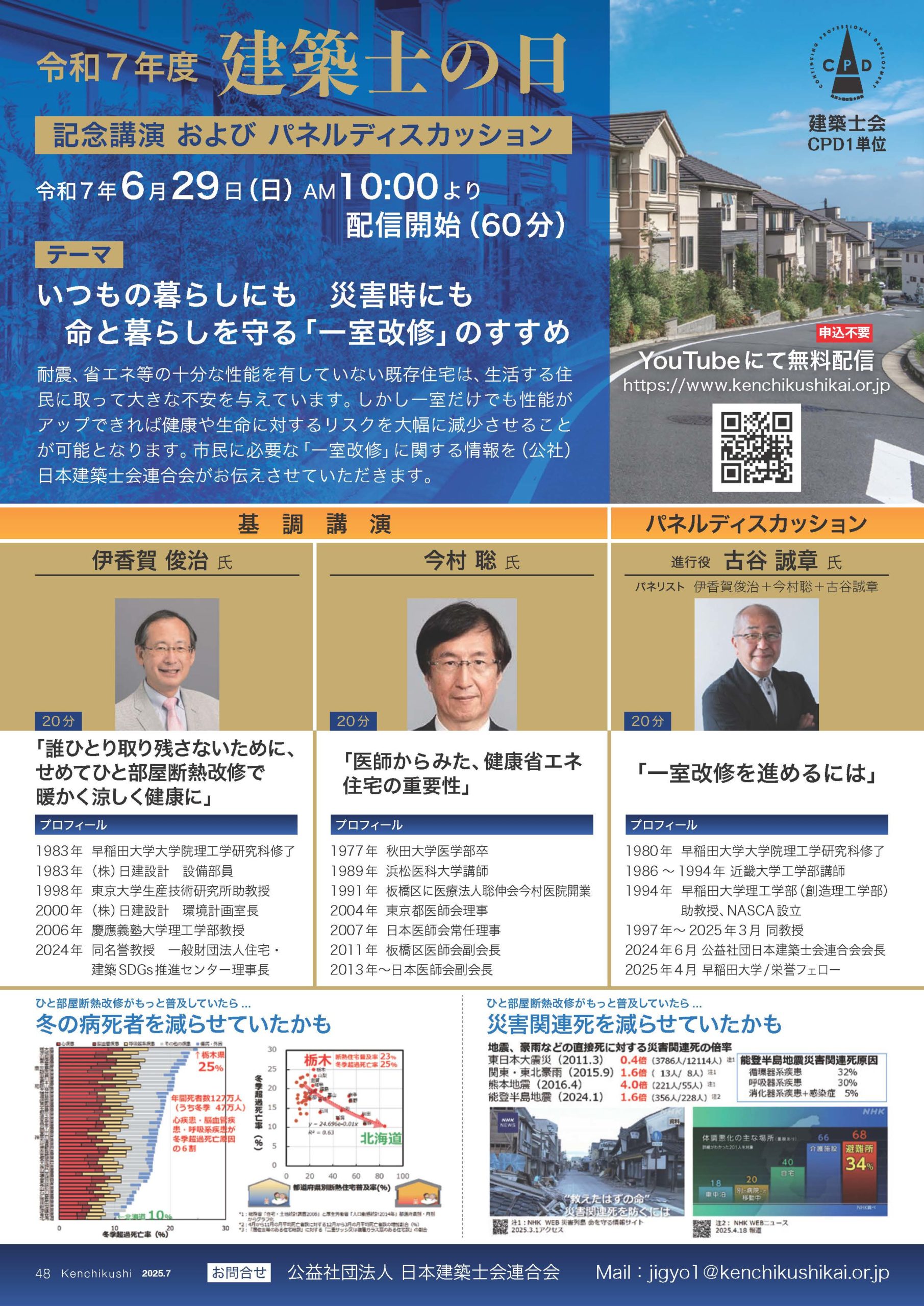 日本建築士会連合会 「建築士の日」記念講演のおしらせ