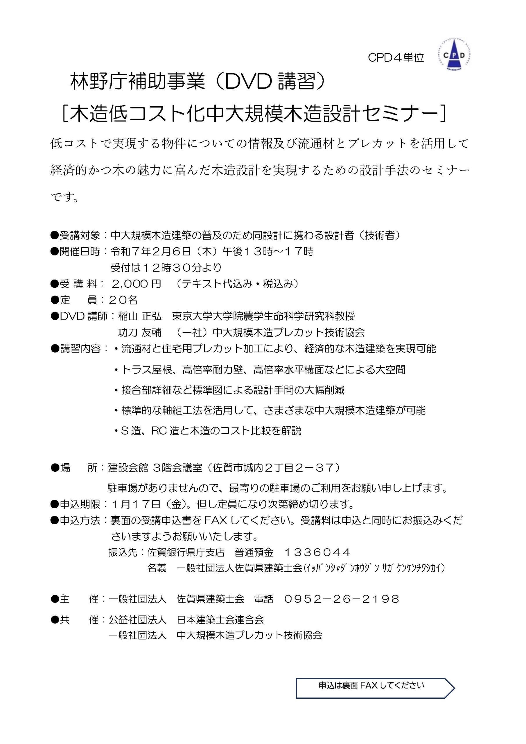 林野庁補助事業(DVD講習)「木造低コスト化中大規模木造設計セミナー」