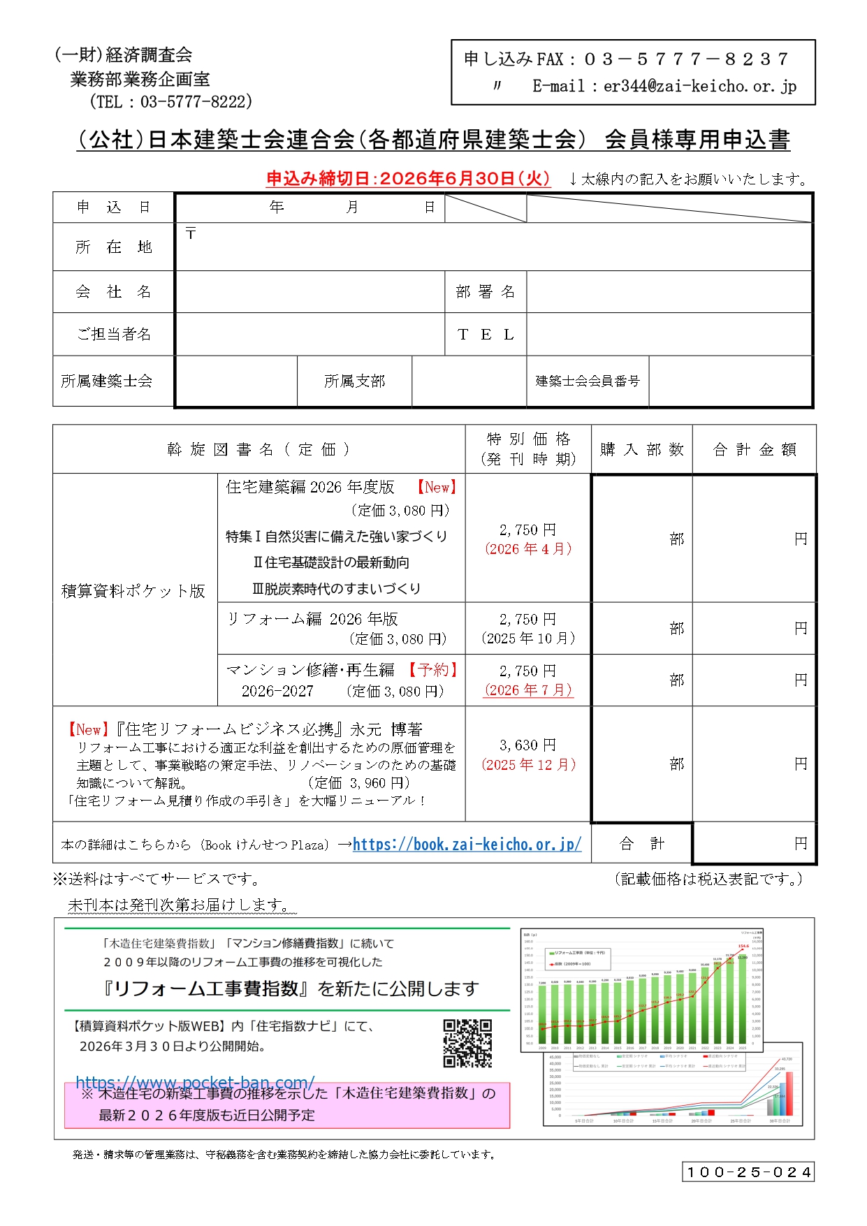2026年4月10日 / 最終更新日 : 2026年4月10日 佐賀県建築士会 会員向け 積算資料ポケット版((一財)経済調査会) 割引販売のお知らせ 日本建築士会連合会様 会員専用図書申込書ダウンロード